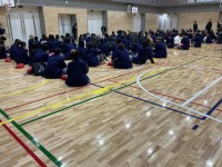 各学年が、校舎内に入り、1階から3階、体育館棟の体育館や専科教室、