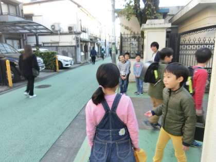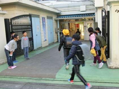 2年生 あいさつ運動 通勤・通学の方々も返してくれます