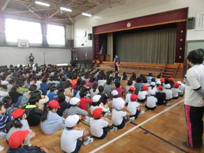 各学級、子供たちは教室の窓側によって、身を潜めます。