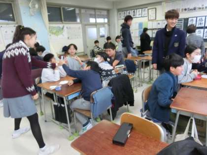 全学年全学級と都立国際高校生徒の皆さんとの交流活動がありました。
