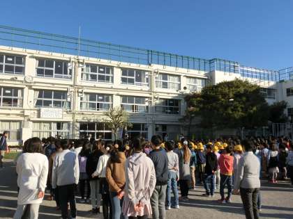 「あいさつ週間」、5年生があいさつ宣言での目標どおり