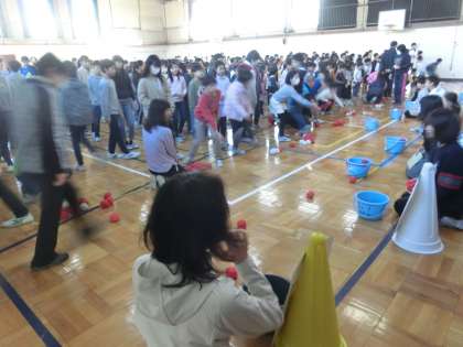 今日の集会は、そのバケツに紅白玉を投げ入れ、