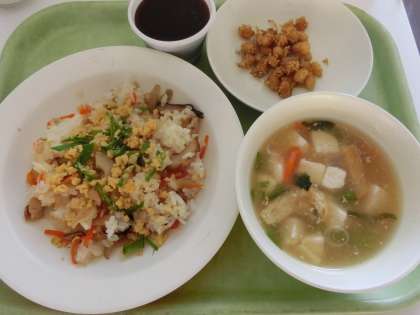 本日の給食は、五目ずし、吉野汁、大豆とじゃこの甘辛あげ、ブドウゼリー、牛乳です。