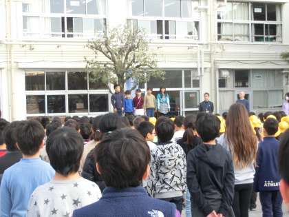 全校朝会で、5人の代表が、