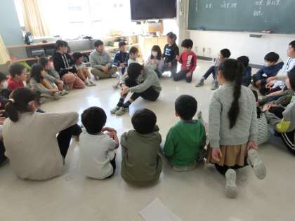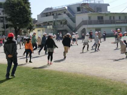 春めいた気候のもと、中休みに「なかよし班交流遊び」が行われました。