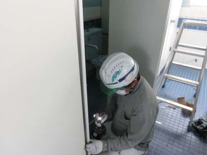 今日は、様式トイレの出入りを車イスでも可能とする改修や