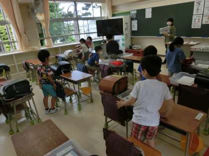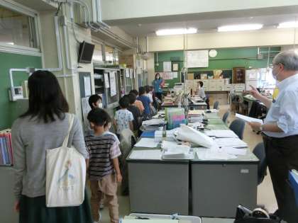 今日は、職員室、校長室に探検に来ていた1年生。