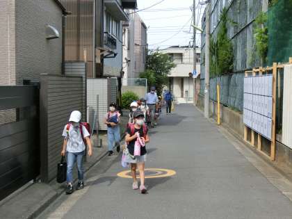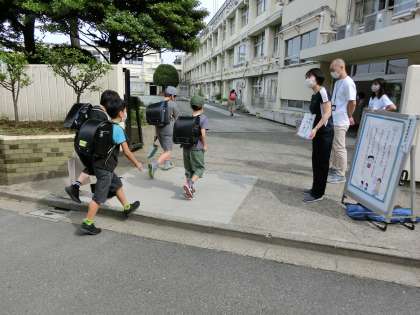 一緒に学校まで来てくださる保護者の皆様も多く、