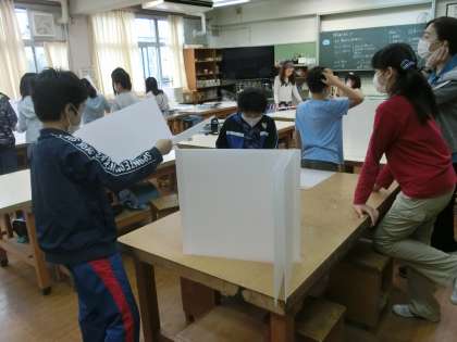 6年生 さすが!手際よくパーテーションの組み立て