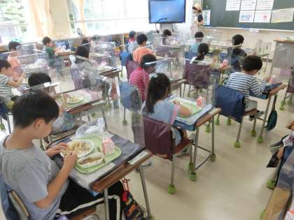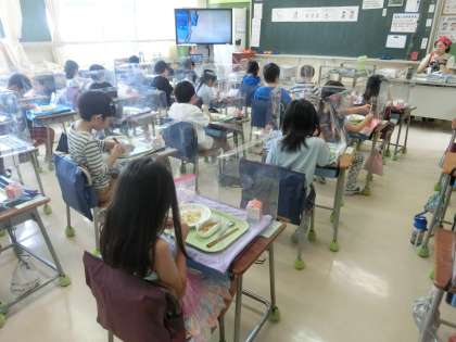 1年生 給食 今日は、さっとできました 牛乳パックのストロー差し