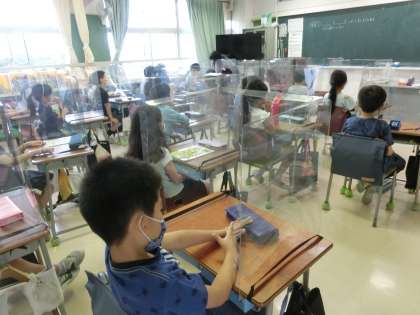 通常の授業では、シールドを立て、感染症予防を図ります。