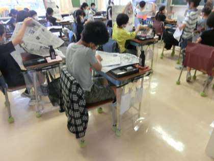 書写などの授業のときは、畳んで、自席の脇に収納。