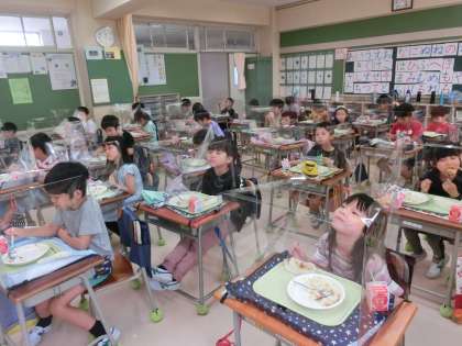 今日の献立は、三色ピラフと鶏肉のカレー焼きです。