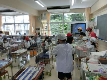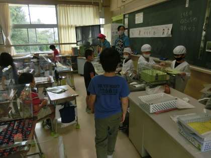 もし、1年生の給食配膳の様子を観ていただいていたら、