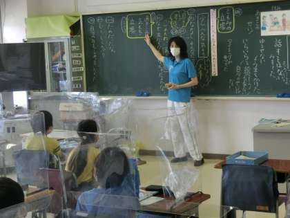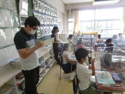 授業を1年生担任の佐々木先生、