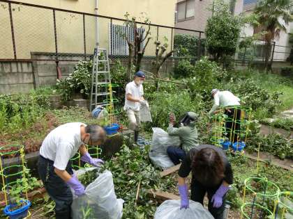主事さん方が樹木の剪定や草むしりをしてくれました。