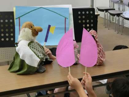 あかずきんちゃんと浦島太郎、桃太郎のお話をミックスした、