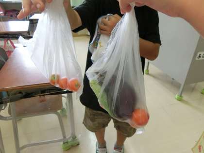 自分が担当した野菜を、補習に来た子供たちで持ち帰りました。