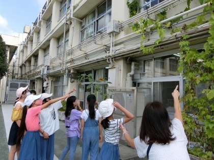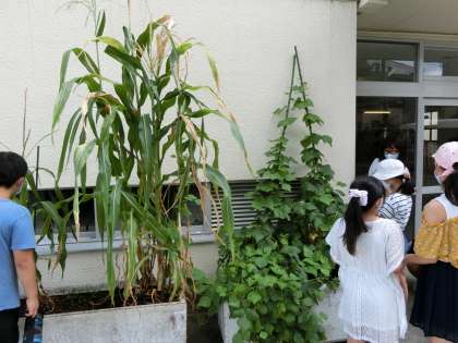 5年生は外へ出て、育てていた植物の観察を行いました。