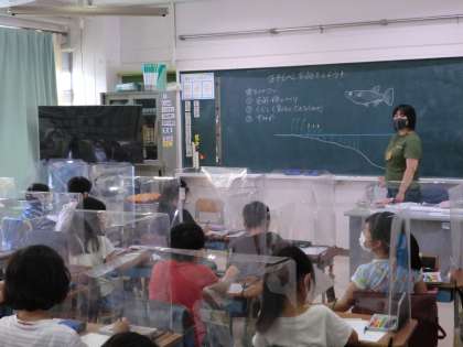 ゲストティチャーを招き、ビオトープについて学びました。初めて知ることばかりで、みんな夢中で聞きました。メダカやとんぼの体のつくり、くらし(食べ物、たまごのうみ方)、すみかを知り、それをもとに生き物の気持ちになってすみたいところや、他の生き物との関係を想像しました。次回10月は、校庭のビオトープの手入れをします。楽しみです。