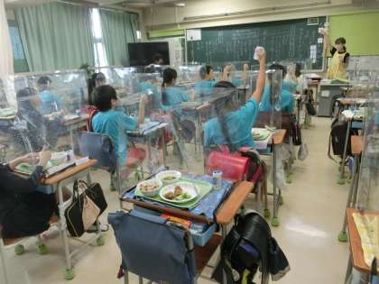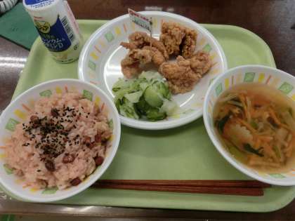 今日の給食は、開港記念をお祝いしてお赤飯に、