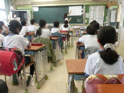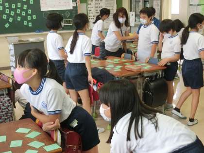 今日も英語に親しみ、楽しむ子供たちの笑顔と