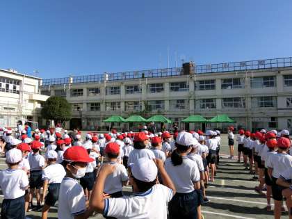 今日は池之上小学校全学年が校庭に集合しました。