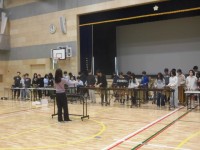 今日の給食は、照り焼きチキンバーガー、マカロニスープ、なし、牛乳です。