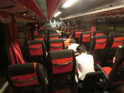 今回配車されたバスは、大型の観光バスで座席の列が12もあり、