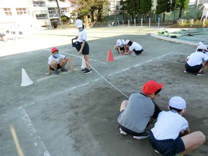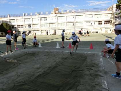 5年生は走り幅跳びを学習しています。