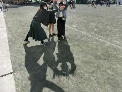 校庭では、5年生と音楽の糟谷先生が、