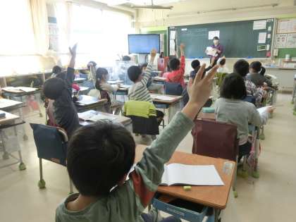 今日は、1年2組の算数、ひき算の学習を