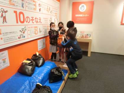 防災体験ゾーンでひとり一人タブレットを持ち、