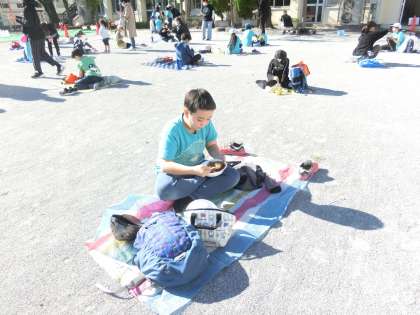 5年生 火をおこして、お湯を沸かし、その中にレトルトカレーを入れて