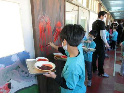 1年生、2年生に続いて、今日の5年生に続いてのペイントです。