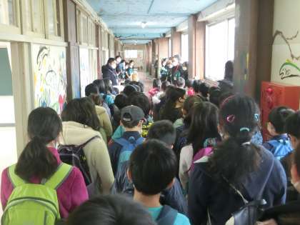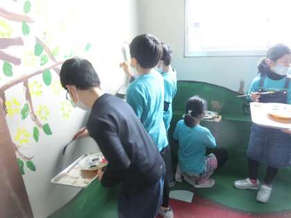 4年生、校舎お別れペイントのため、
