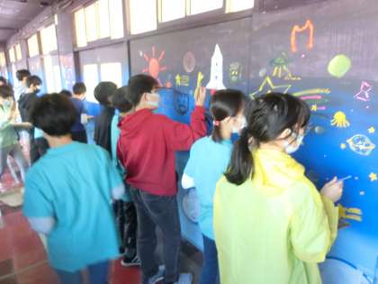 6年生、校舎お別れペイントのため、