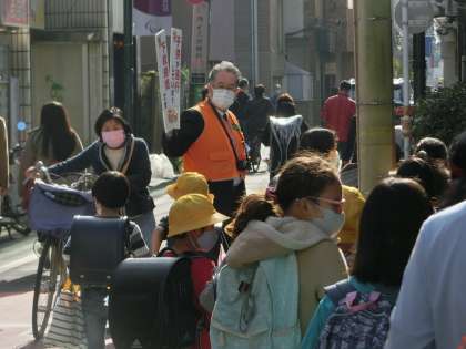 “呼びかけ隊”の方々の子供たちの下校を見守る視線、