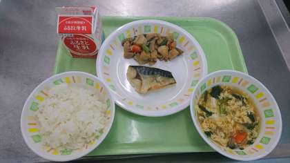 12月23日(水)の給食は、ごはん、さばの塩焼き、いりどり煮、みそ汁、牛乳です。