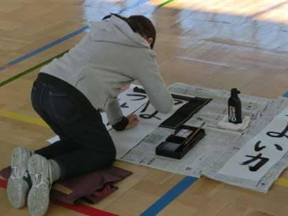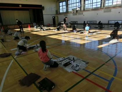 体育館での書き初め大会をつなげていきます。