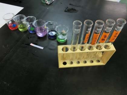 酸性、中性、アルカリ性に分ける実験をしました。