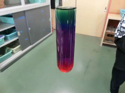 1本の試験管の上下に液性の違う水溶液を入れて