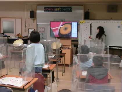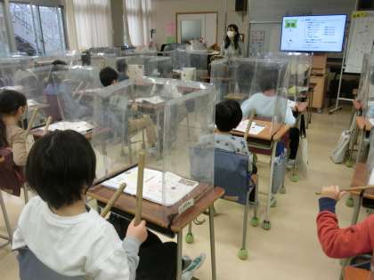 「神田ばやしに合わせて、しめ太鼓をたたこう」という学習をしていました。
