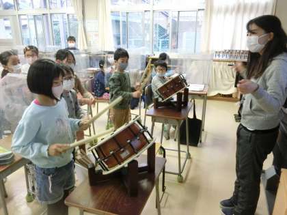 3年生 音楽「神田ばやしに合わせて、しめ太鼓をたたこう」