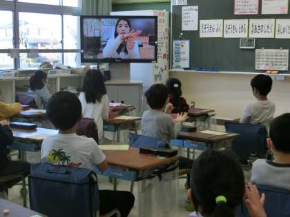 教室の子供たちは、歌なしの手遊び歌を楽しんでいました。