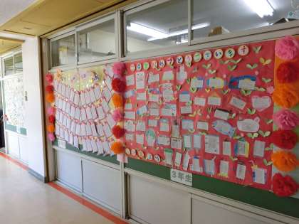 職員室前に飾られているメッセージにも