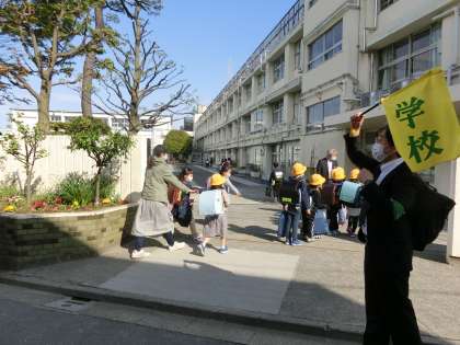 教育委員会の皆様にも集団登校の見守りにいらしていただき