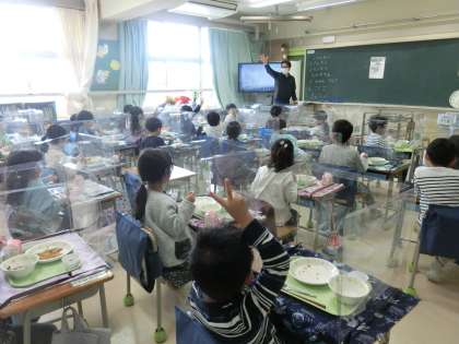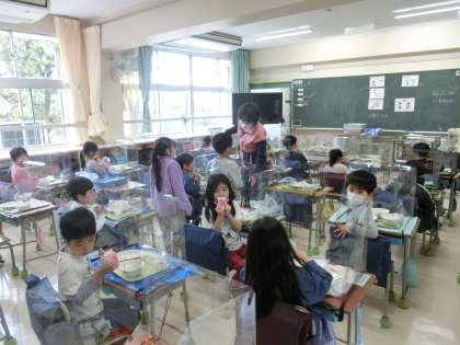 今日の給食献立は、ソース焼きそばと中華コーンスープ、大学芋。