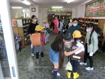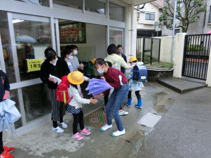 1年生のランドセルやカッパを優しく拭いてくれました。