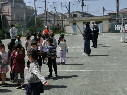 いったん立ち止まり、右→左→右を見て、わたり始めます。